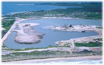 Sydney's booming building industry has seen in excess of 170 million tonnes of sand extracted from the Peninsula since the 1930s. In some sections once towering sand dunes have been replaced by deep lakes, many of which are now being filled with demolition waste.